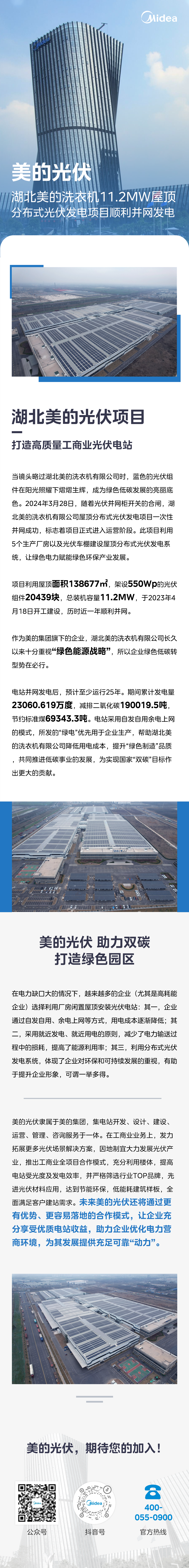 美的光伏 | 湖北美的洗衣機11.2MW屋頂分布式光伏發電項目順利并網發電